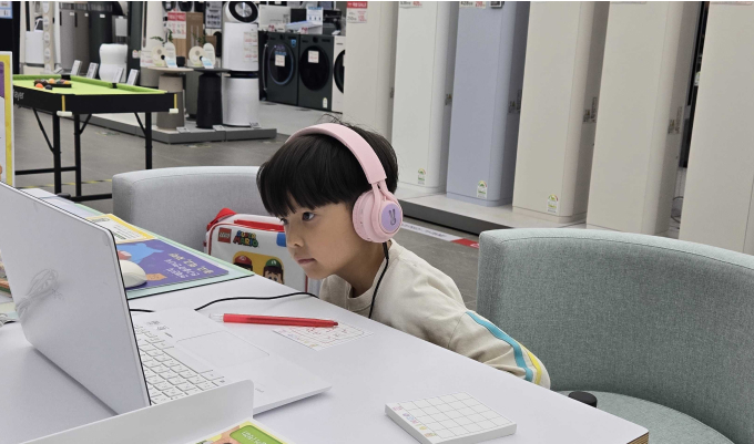 아이들은 화면 앞에서 집중하고 있지만